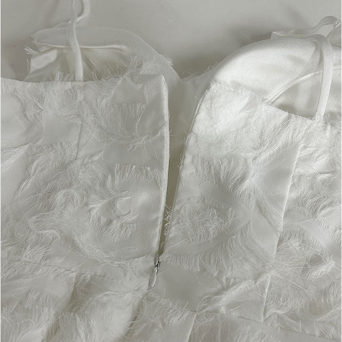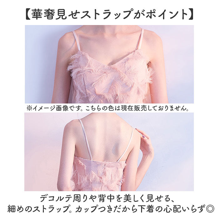 ・デコルテ周りや背中を美しく見せる、細めのストラップ。カップつきだから下着の心配いらず◎