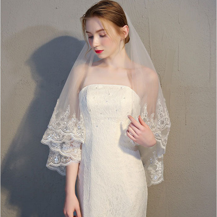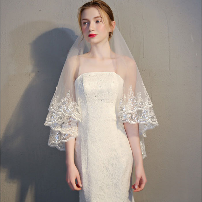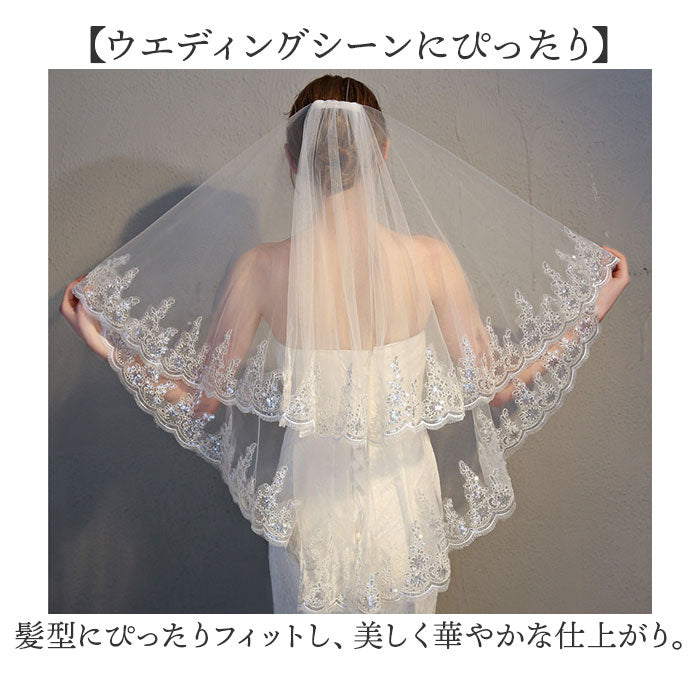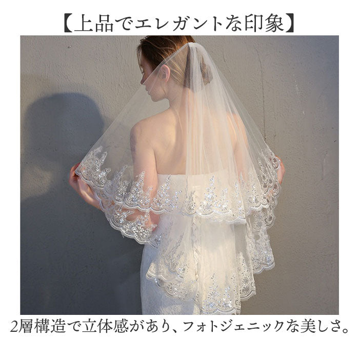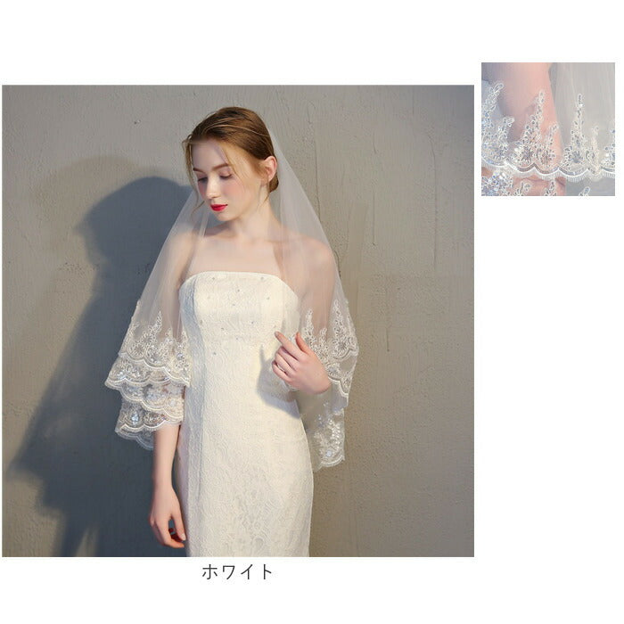 ウェディング ベール ミドル 通販 ウェディングベール ウエディングベール ウエディング ヴェール ミドルベール 結婚式 花嫁 veil 2層 ベールアップ ベールダウン シンプル レース 刺繍