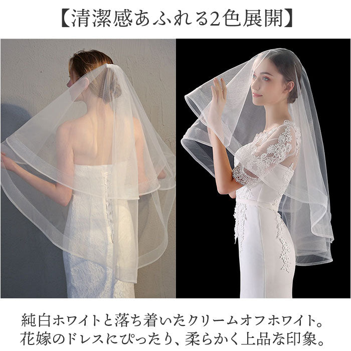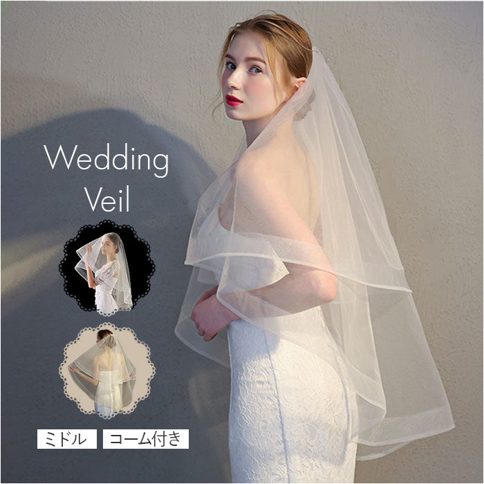 ウェディング ベール ミドル 通販 ウエディングベール ウェディングベール ミドルベール ウエディング ヴェール 結婚式 花嫁 veil 2層 ベールアップ ベールダウン 金属コーム付き