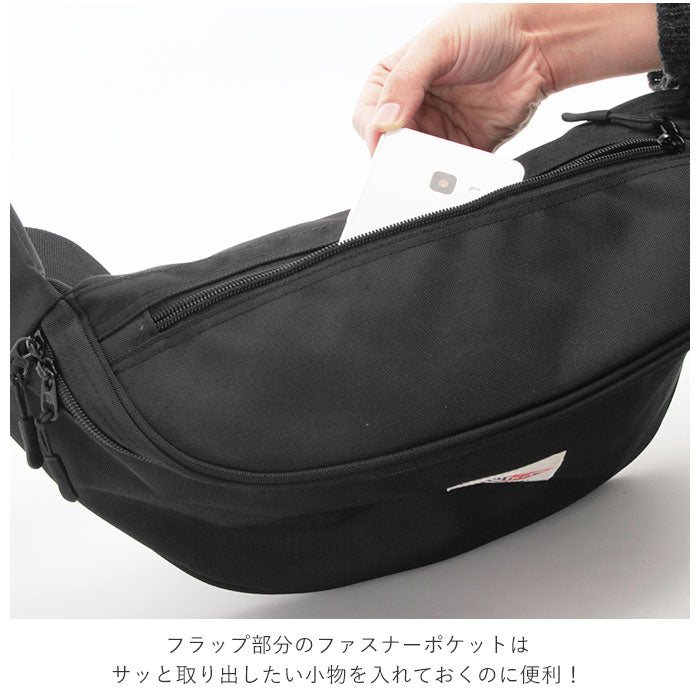 ・軽量で丈夫な1100デニール・ポリエステル生地を使用した、ちょっと大きめサイズのHoliday A.M.(ホリデーエーエム)サイクリング・ボディバッグ。