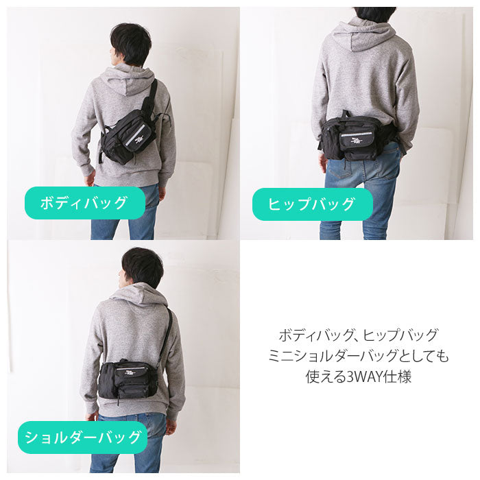 ・ボディバッグ、ヒップバッグとしてはもちろん、付属のショルダーストラップでミニショルダーバッグとしても使える3WAY仕様。