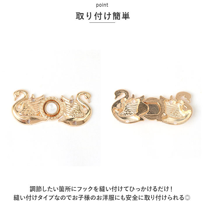 ・調節したい箇所にフックを縫い付けてひっかけるだけ!縫い付けタイプなのでお子様のお洋服にも安全に取り付けられる◎