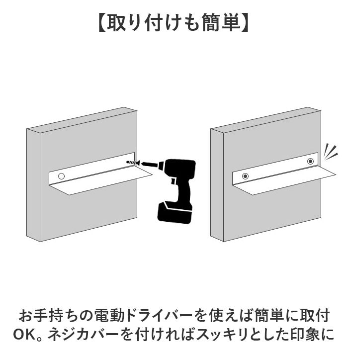 ・お手持ちの電動ドライバーを使えば簡単に取付OK。ネジカバーを付ければスッキリとした印象に