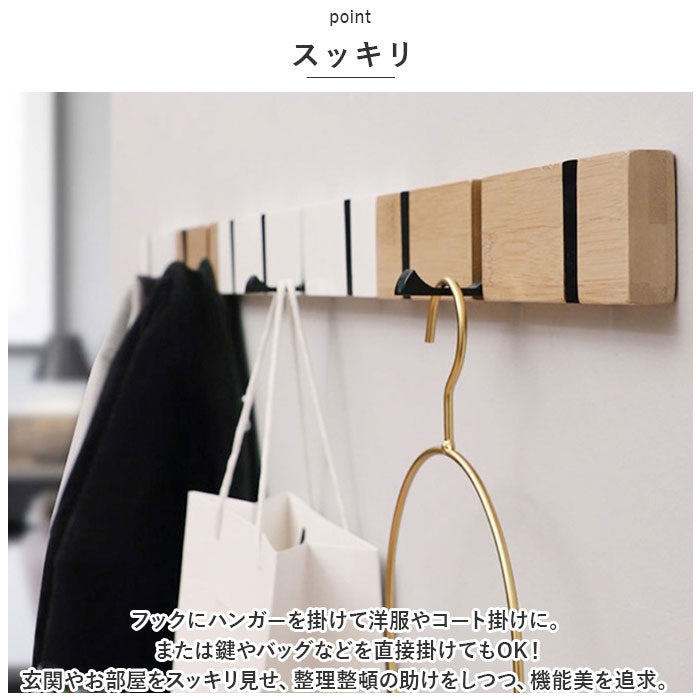 ・木製ベースに黒のフックがモダンな印象。スタイリッシュで飽きのこないデザインでどんなインテリアとも相性抜群。