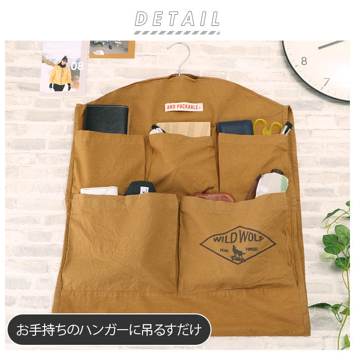 ・ハンガーに吊るすだけで、大小5つのポケットが付いたウォールポケットに。