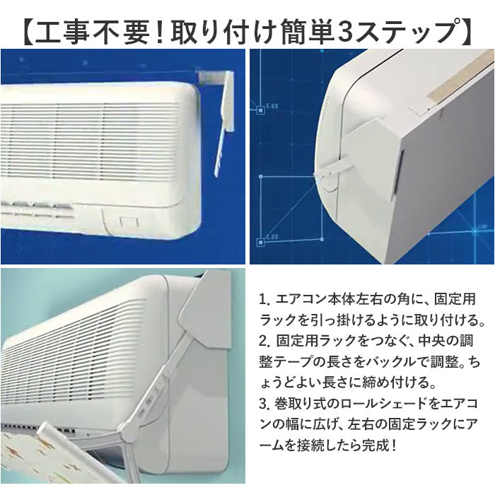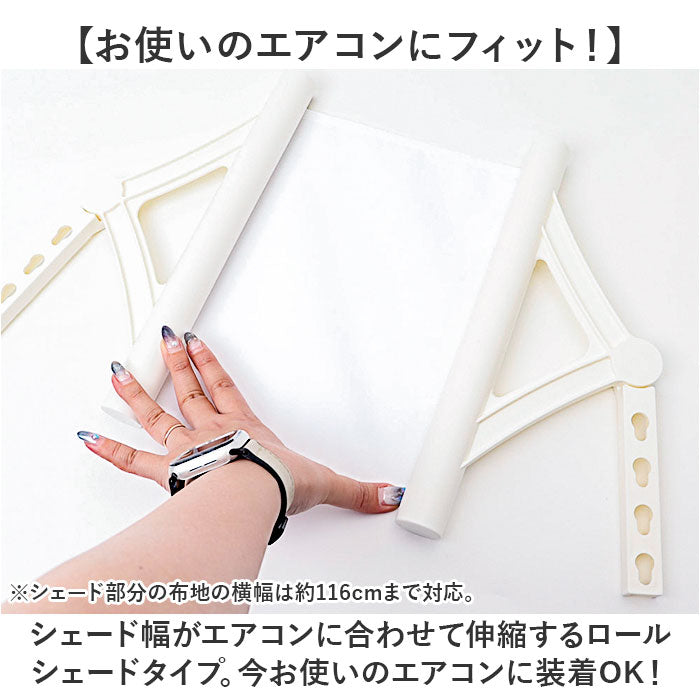 ・シェード幅がエアコンに合わせて伸縮するロールシェードタイプ。今お使いのエアコンに装着OK!
