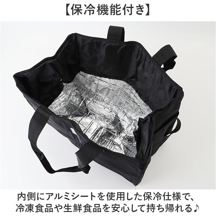 ・内側にアルミシートを使用した保冷仕様で、冷凍食品や生鮮食品を安心して持ち帰れる♪