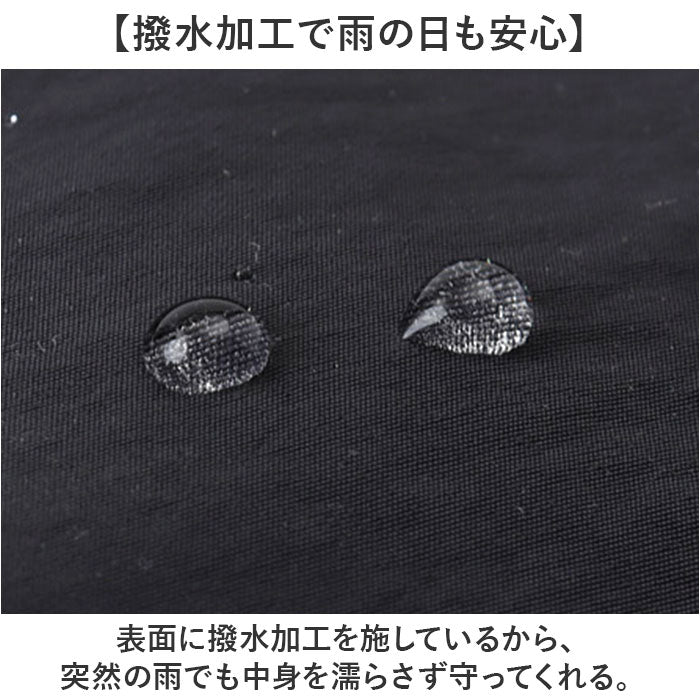 ・表面に撥水加工を施しているから、突然の雨でも中身を濡らさず守ってくれる。