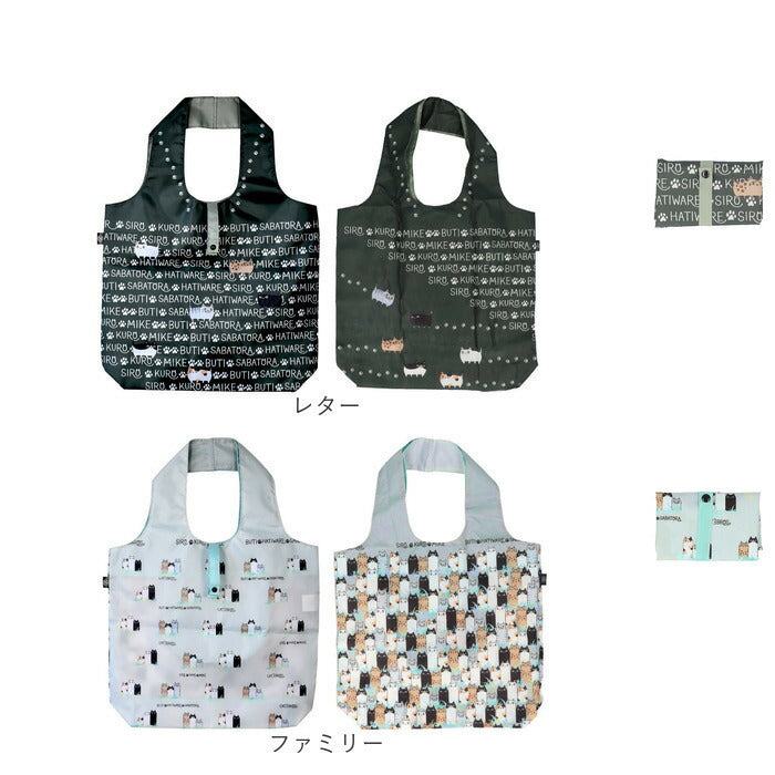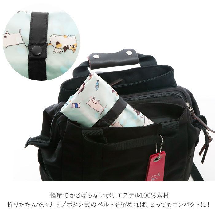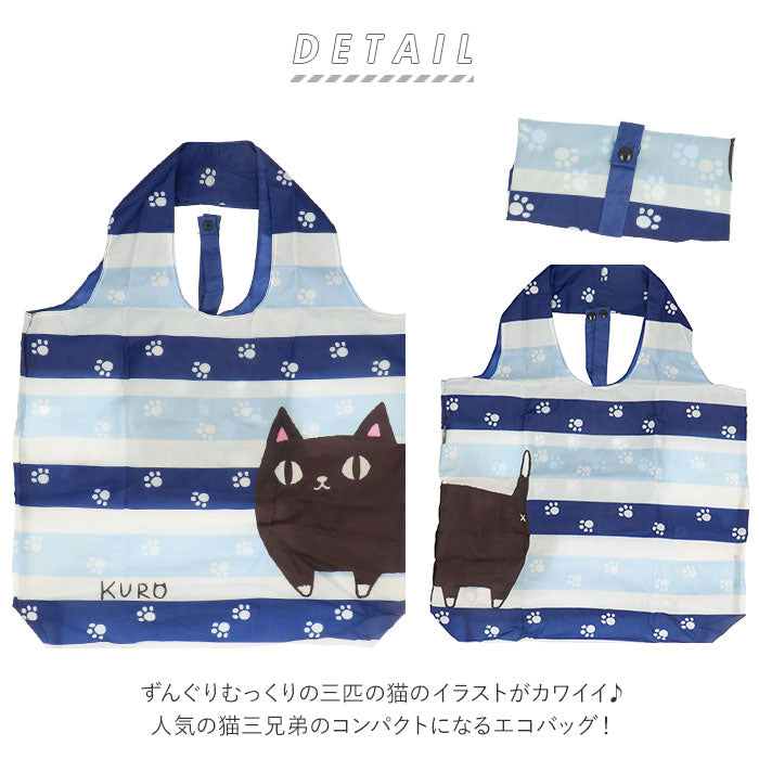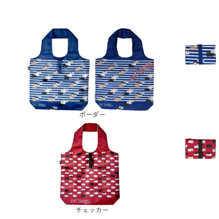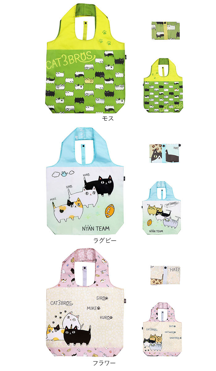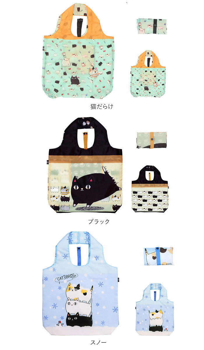 ・ずんぐりむっくりの三匹の猫のイラストがカワイイ♪人気の猫三兄弟のコンパクトになるエコバッグ!