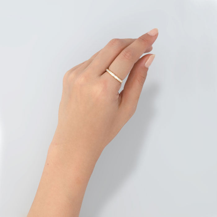 ・華奢なシルエットに、繊細な輝きをプラスしたリング。さりげない上品さで日常使いにおすすめ。