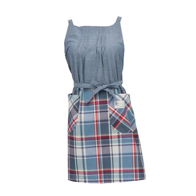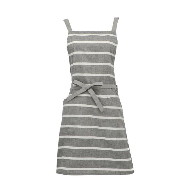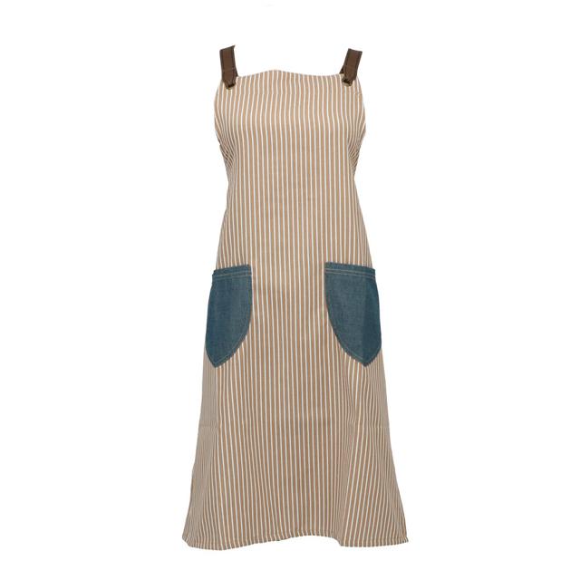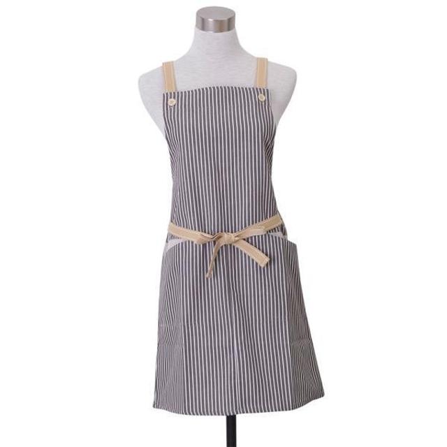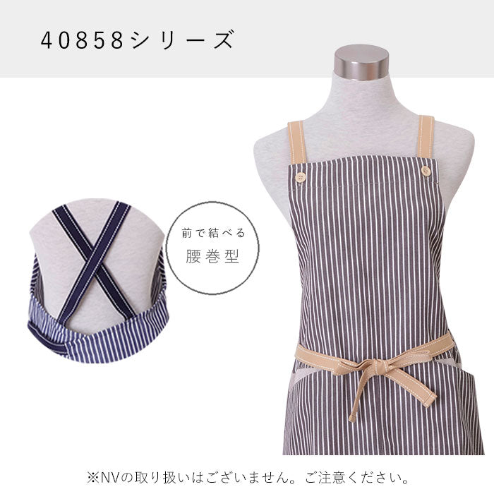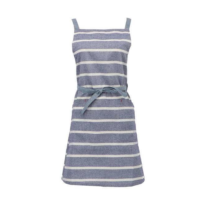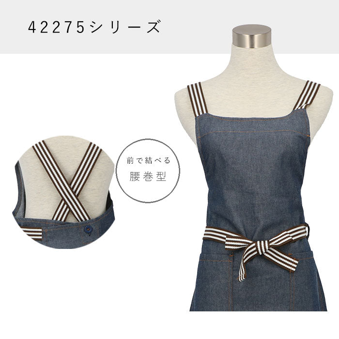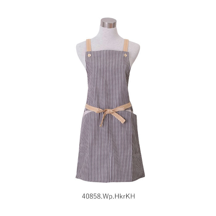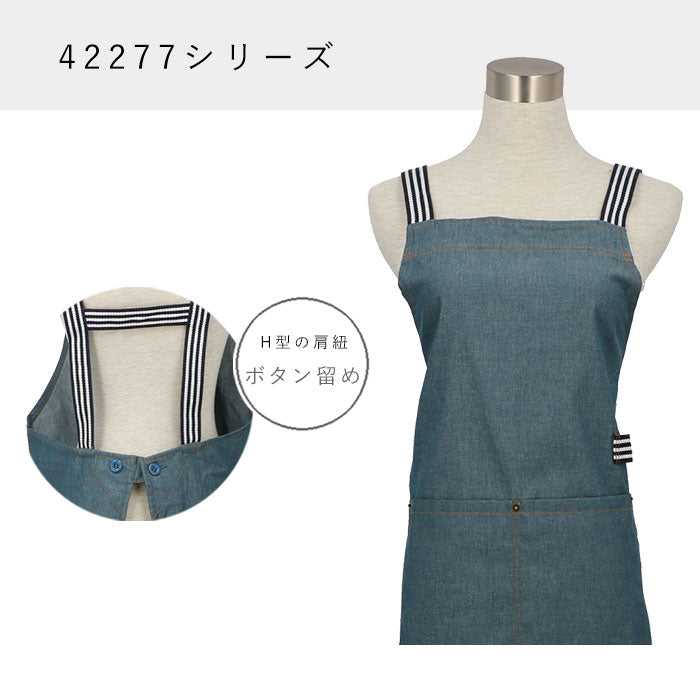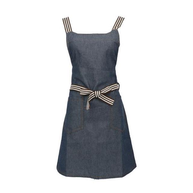 シンプルなデニム地にストライプがアクセントになった、使いやすいワークエプロンです。