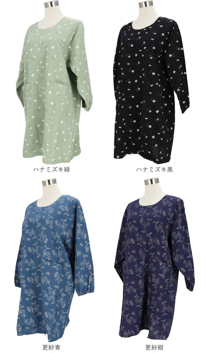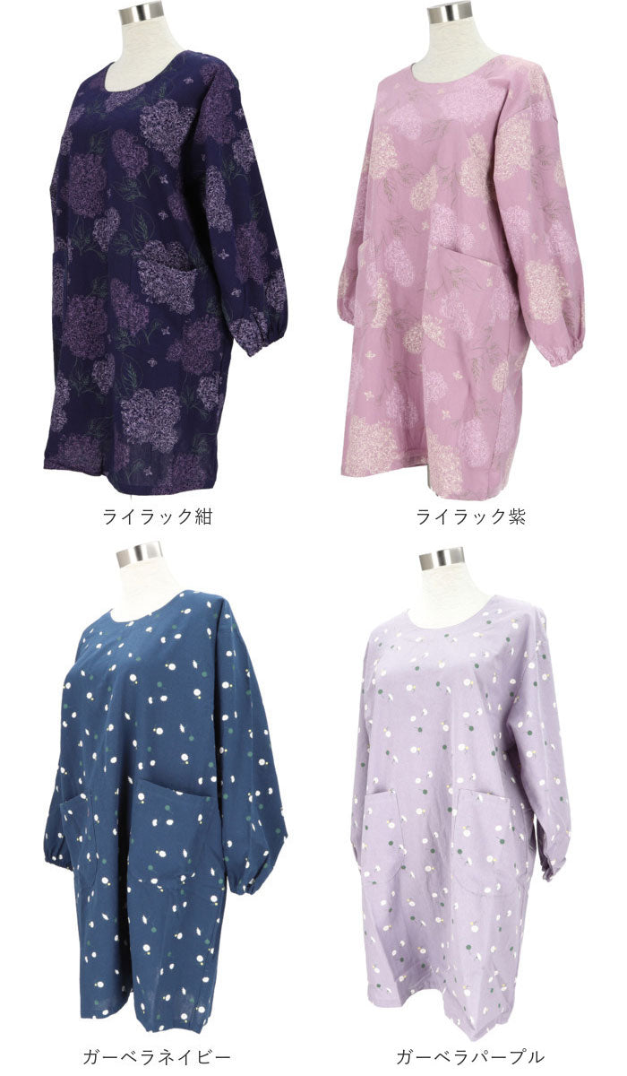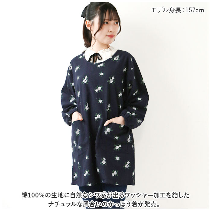 エプロン おしゃれ 通販 かっぽう着 前掛け 保育士 割烹着 長袖 カフェエプロン 介護士 レディース 綿100% コットン ワッシャー加工 かわいい 母の日 敬老の日 ギフト