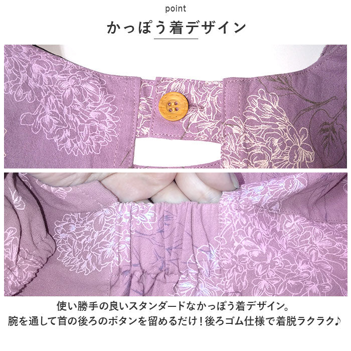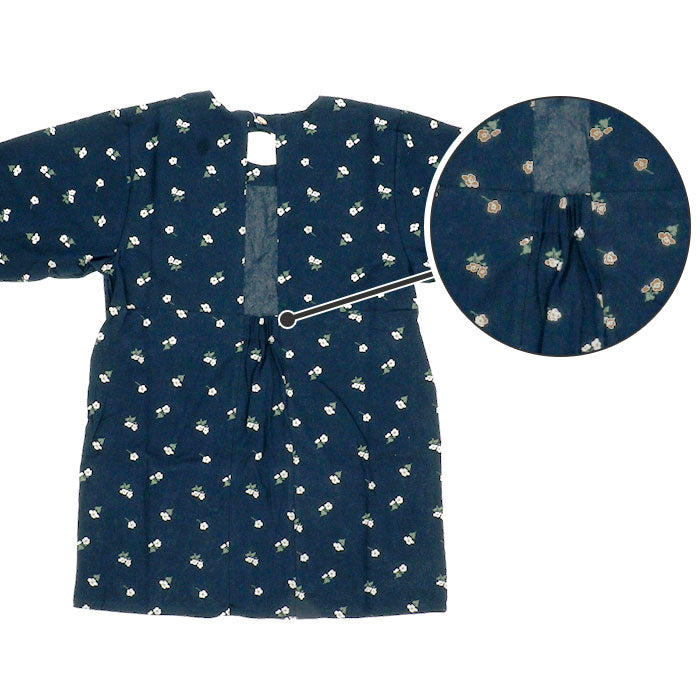 ・使い勝手の良いスタンダードなかっぽう着デザイン。腕を通して首の後ろのボタンを留めるだけ!後ろゴム仕様で着脱ラクラク♪(※カラーによりバックスタイルが異なります)