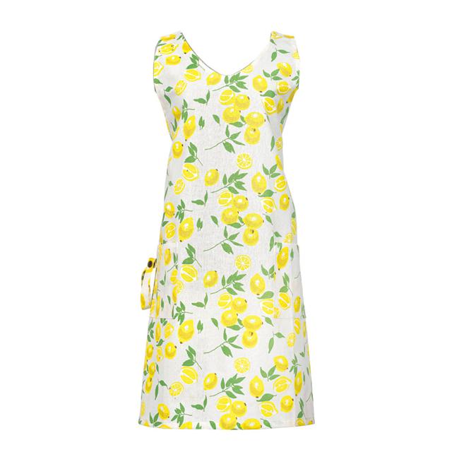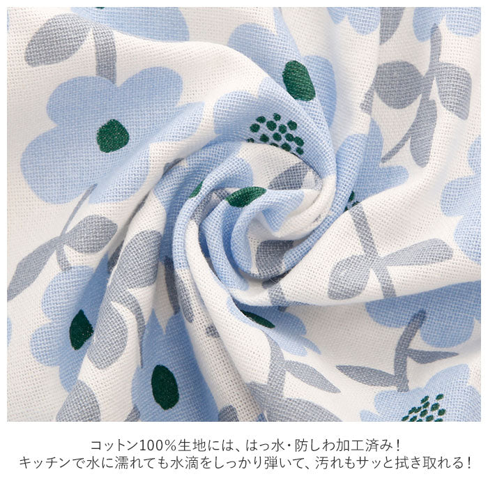 ・白さがまぶしい爽やかなコットン100%生地には、はっ水・防しわ加工済み!キッチンで水に濡れても水滴をしっかり弾いて、汚れもサッと拭き取れる!