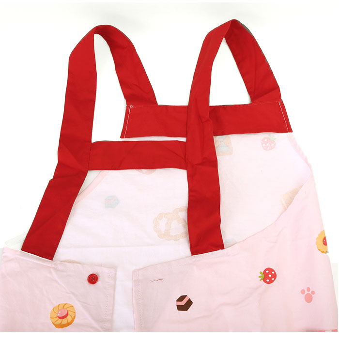 ・後ろでボタンを留めるタイプなので、いつの間にかエプロンがはだけてしまう心配がない。