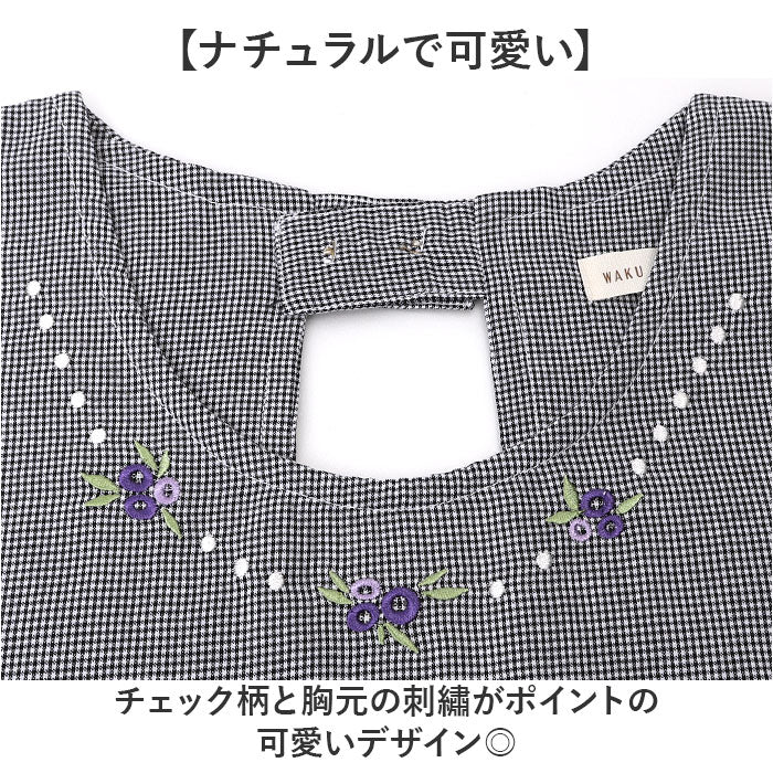 ・チェック柄と胸元の刺?がポイントの可愛いデザイン◎