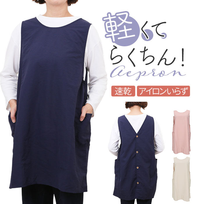 エプロン 無地 レディース 通販 シンプル ナイロン おしゃれ カジュアル 後ろボタン カフェエプロン 保育園 ナチュラル キッチン 料理 ポケット付き ワークエプロン ガーデニング 作業