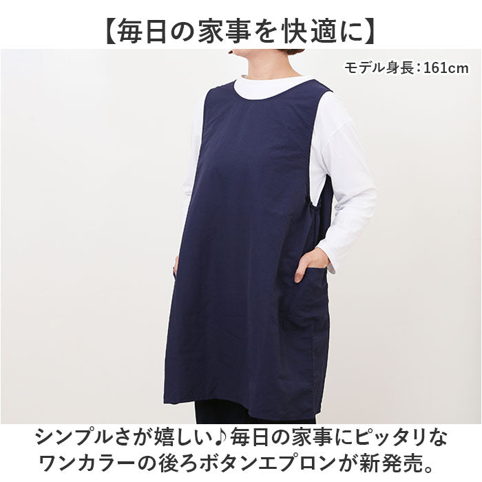 ・シンプルさが嬉しい♪毎日の家事にピッタリなワンカラーの後ろボタンエプロンが新発売。