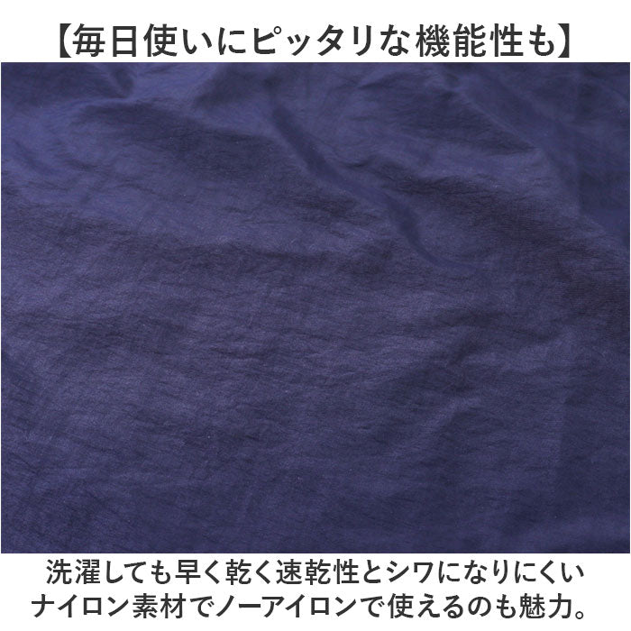 ・洗濯しても早く乾く速乾性とシワになりにくいナイロン素材でノーアイロンで使えるのも魅力。