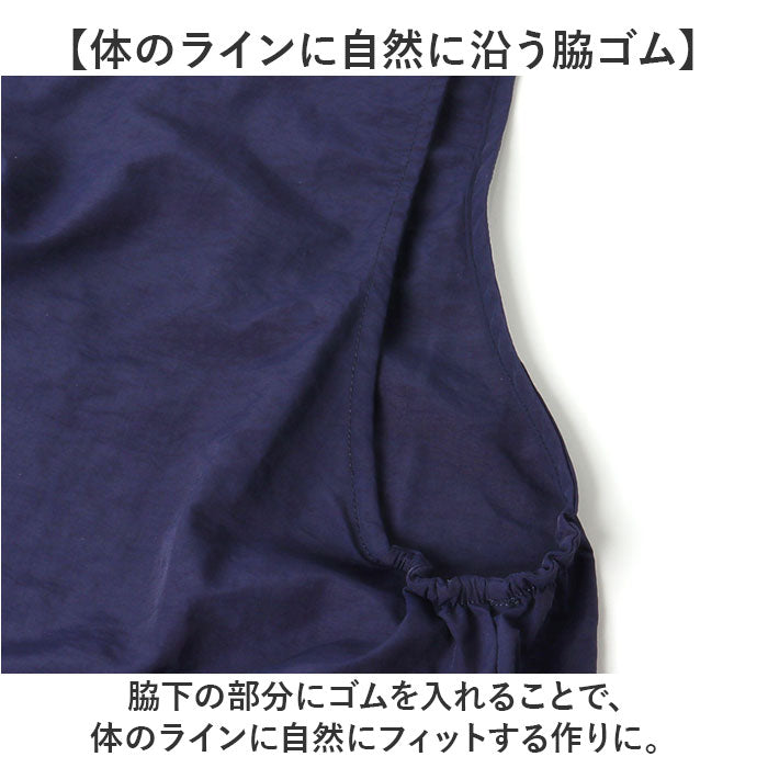 ・脇下の部分にゴムを入れることで、体のラインに自然にフィットする作りに。