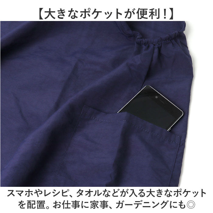 ・スマホやレシピ、タオルなどが入る大きなポケットを配置。お仕事に家事、ガーデニングにも◎