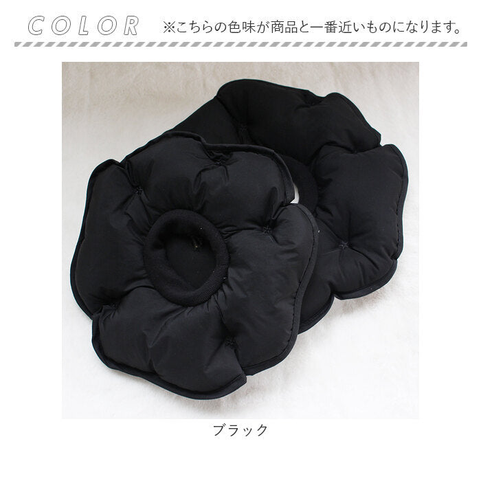 ・プラスチック素材のエリザベスカラーに比べて、柔軟性が高く、寝転んだときにもくつろぎやすいふわふわソフトな触感。お水を飲んだり、フードを食べる時にもストレスフリー。