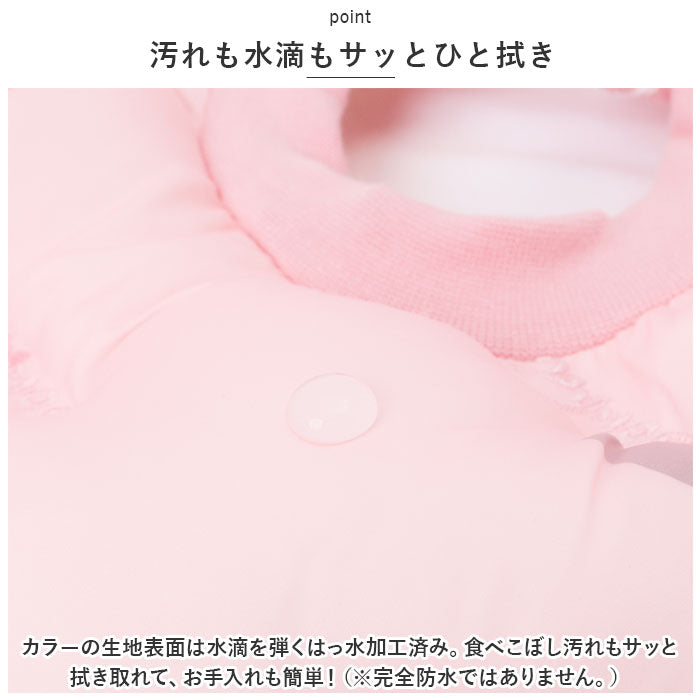 ・カラーの生地表面は水滴を弾くはっ水加工済み。食べこぼし汚れもサッと拭き取れて、お手入れも簡単!(※完全防水ではありません。)