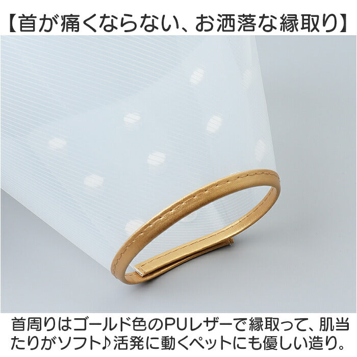 ・首周りはゴールド色のPUレザーで縁取って、肌当たりがソフト♪活発に動くペットにも優しい造り。