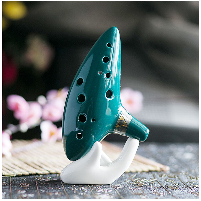 ・深みのある上品な色合いの釉薬で丁寧に仕上げた、本格セラミック製のオカリナ。柔らかく温かみのある音色は、陶器ならではのもの。