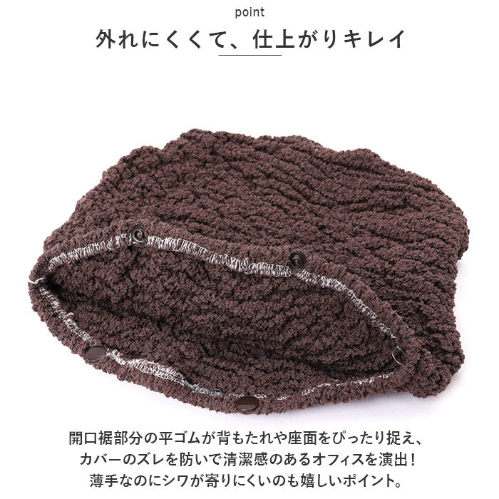 ・開口裾部分の平ゴムが背もたれや座面をぴったり捉え、カバーのズレを防いで清潔感のあるオフィスを演出!薄手なのにシワが寄りにくいのも嬉しいポイント。