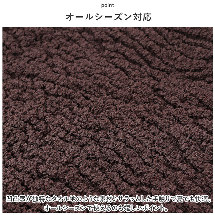・凹凸感が独特なタオル地のような素材♪サラッとした手触りで夏でも快適。オールシーズンで使えるのも嬉しいポイント。