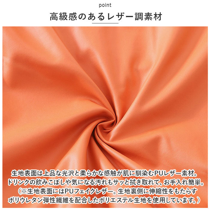 ・生地表面は上品な光沢と柔らかな感触が肌に馴染むPUレザー素材。ドリンクの飲みこぼしや気になる汚れもサッと拭き取れて、お手入れ簡単。(※生地表面にはPUフェイクレザー。生地裏側に伸縮性をもたらすポリウレタン弾性繊維を配合したポリエステル生地を使用しています。)