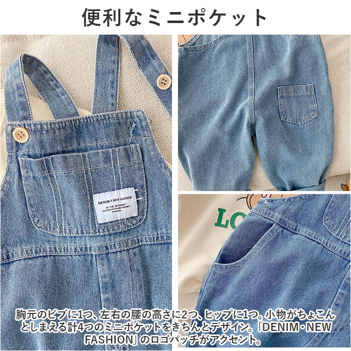 オーバーオール つなぎ 子供服 キッズ 通販 ボトムス サロペット パンツ 長ズボン 女の子 ロングパンツ オールシーズン ジーンズ デニムパンツ ポケット 男女兼用 ベビー服 無地 シンプル
