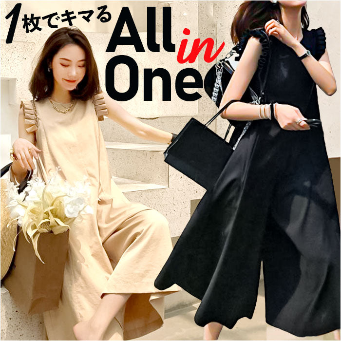 ・1枚でおしゃれにキマる♪ワイドパンツタイプのオールインワンが新登場。