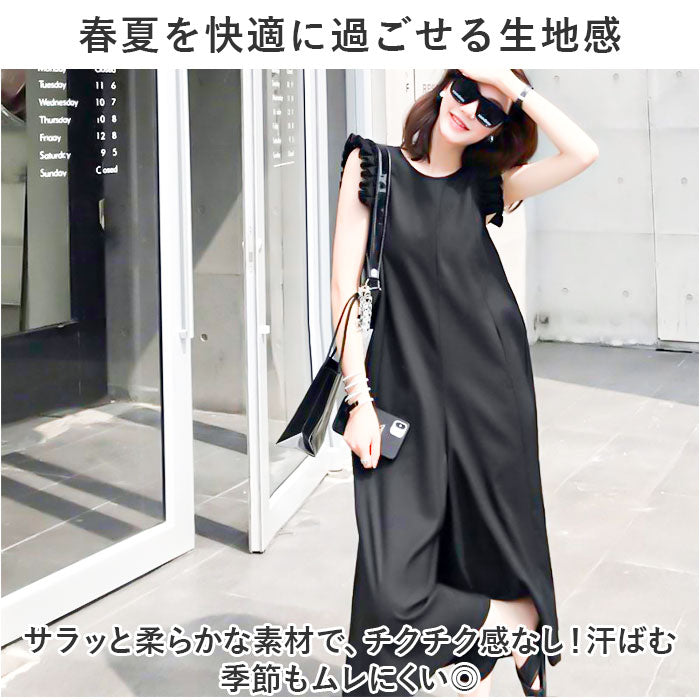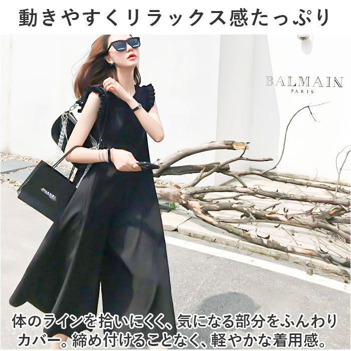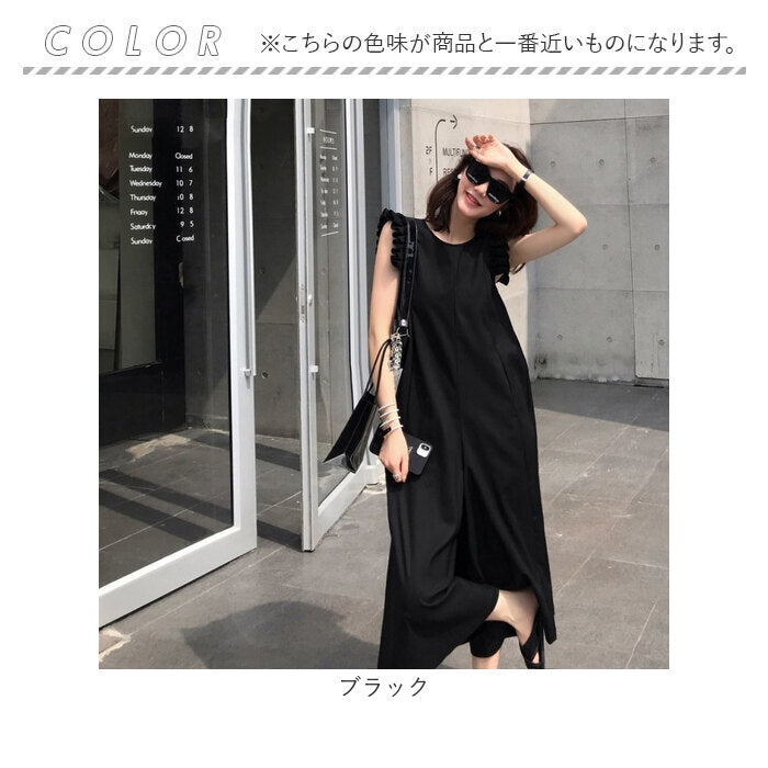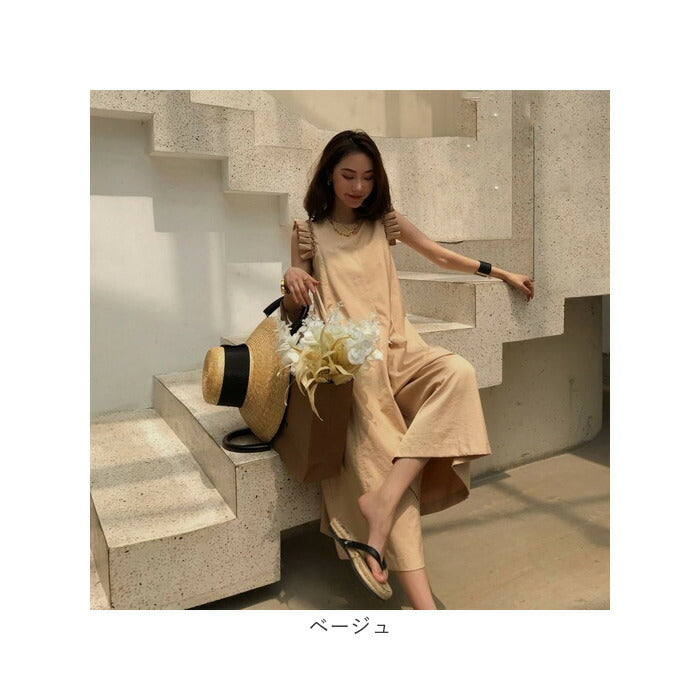 オールインワン ワイドパンツ レディース 通販 ワイド パンツ ワンピース フリル 肩フリル 薄手 薄い フリルショルダー ロング ロング丈 コットン かわいい 可愛い 春夏 春 夏