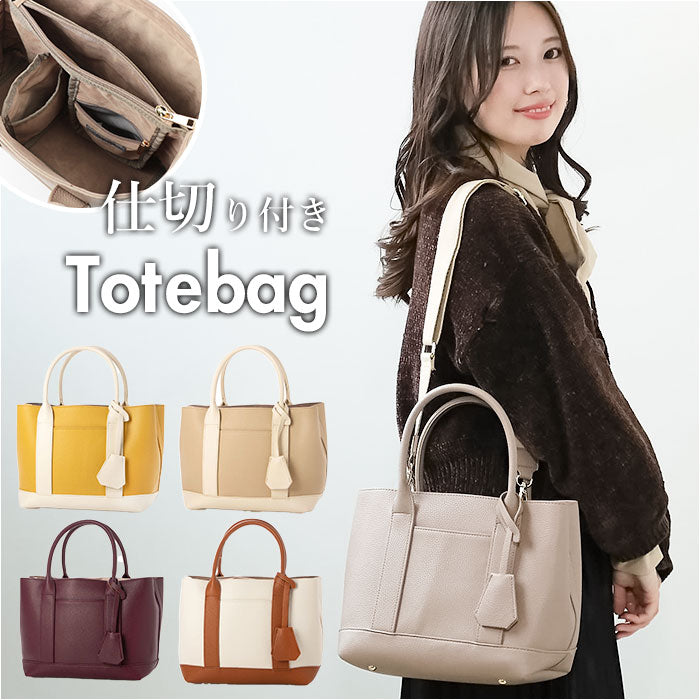 カシュカシュ トートバッグ 通販 cache cache 79280 トートバック トート バッグ 仕切り付き 肩掛け 斜めがけ ショルダー付きパーテーション合成皮革トート レディース 小さめ A5 通勤