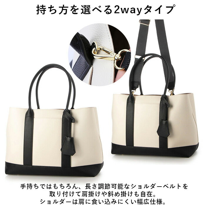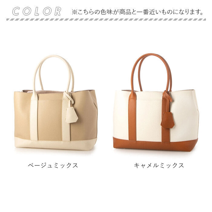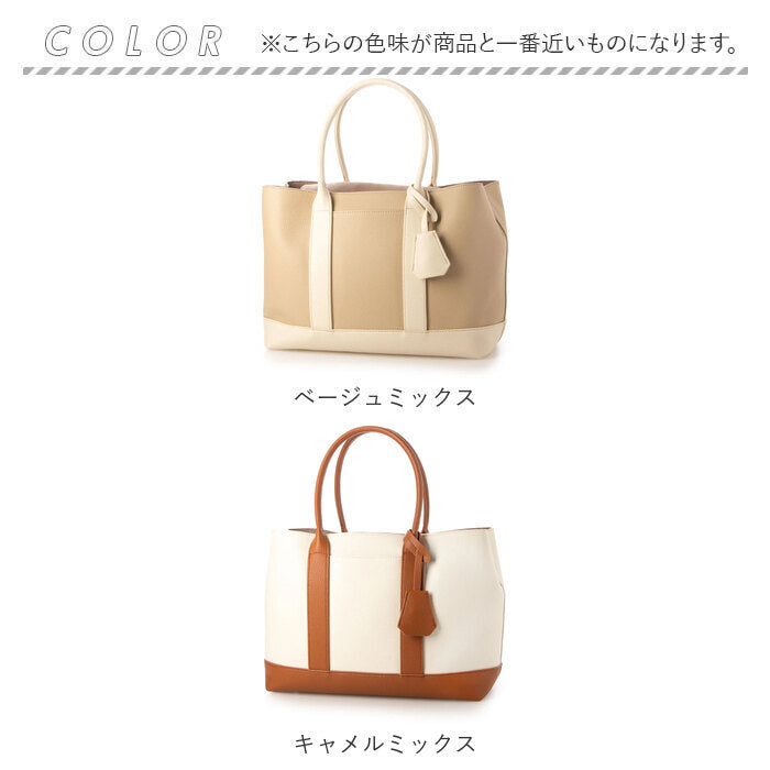 ・マットな質感に仕上げたトートバッグ。単色カラーやミックスカラーからお好みで選んで、お出かけのお供に♪取り外し可能なチャーム付き。