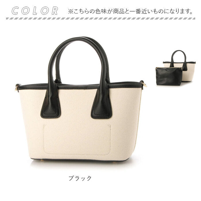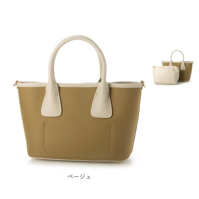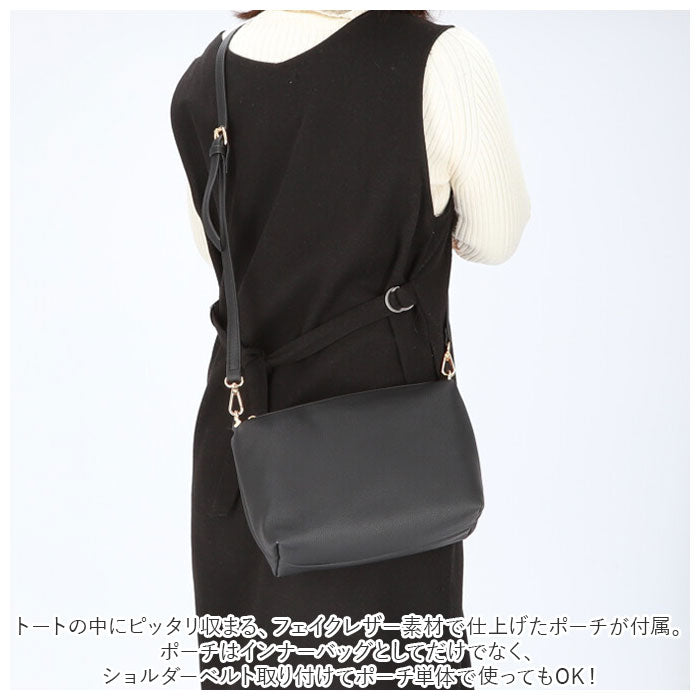 ・トートの中にピッタリ収まる、フェイクレザー素材で仕上げたポーチが付属。化粧ポーチやモバイル小物用ポーチ等、使い方は自分次第。