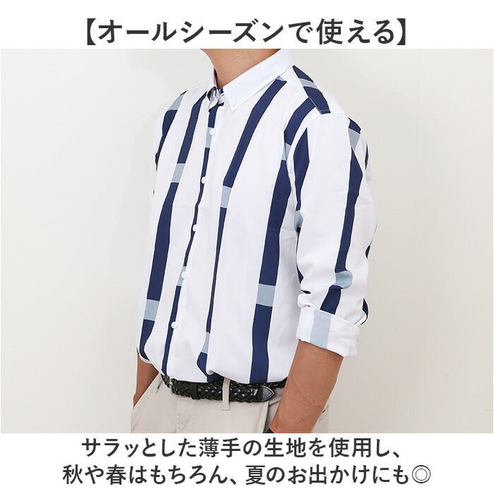 カジュアルシャツ 長袖 メンズ 通販 シャツ 長袖シャツ メンズシャツ ストライプシャツ ボタンダウンシャツ 前開き ボタン カジュアル ストライプ柄 男性 紳士 大人 紳士服 春服 秋服