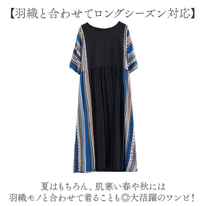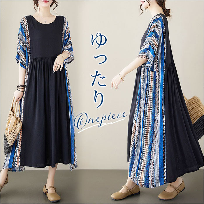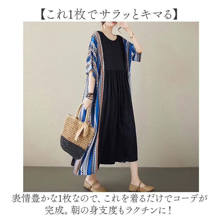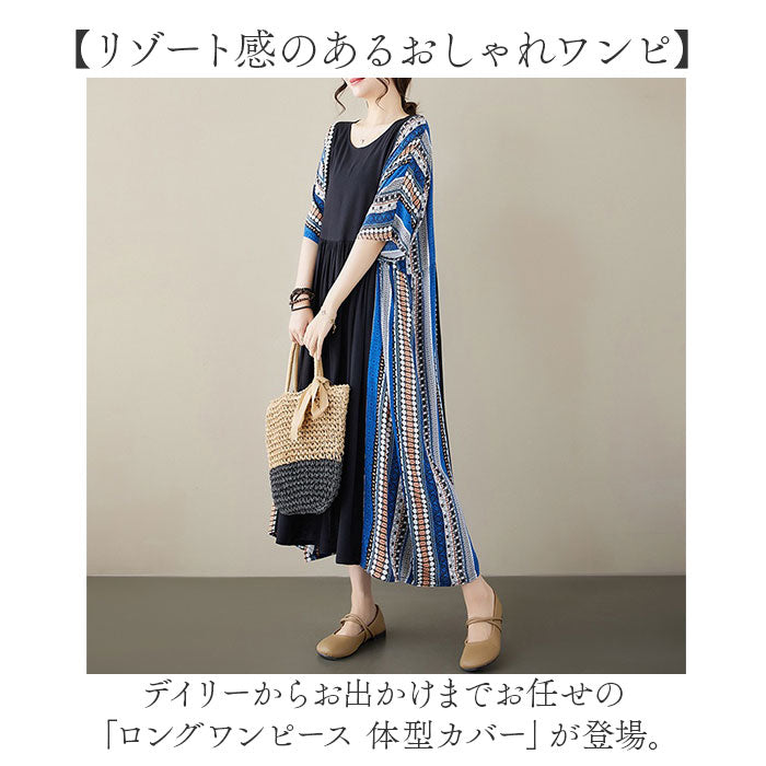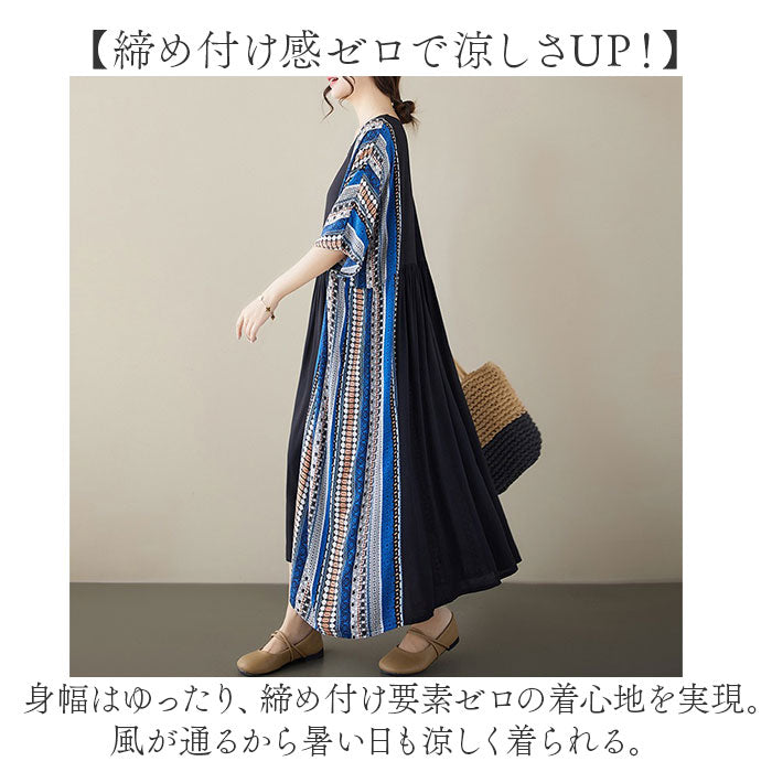 カジュアルワンピース 夏 おしゃれ 通販 ワンピース 体型カバー ロングワンピース ワンピ リゾートワンピース レディース リゾートワンピ 半袖 五分袖 エスニック マキシ ゆったり