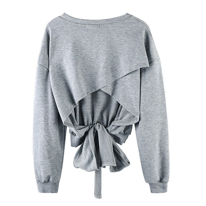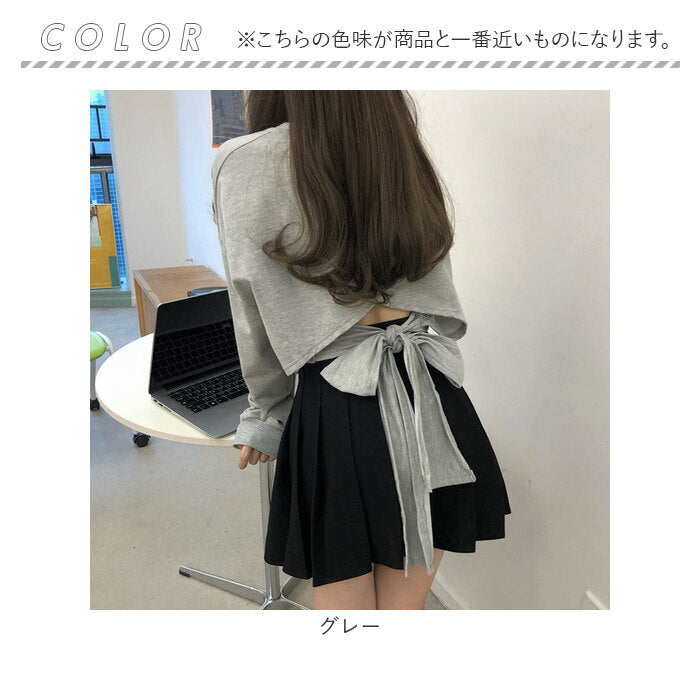 カットソー 長袖 レディース きれいめ 通販 トレーナー プルオーバー トップス Tシャツ ロンT バックリボン ショート丈 ゆったり オーバーサイズ カジュアル かわいい おしゃれ 可愛い