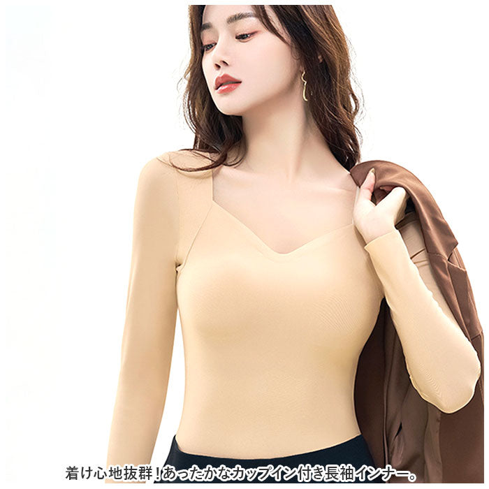 ・着け心地抜群!あったかなカップイン付き長袖インナー。