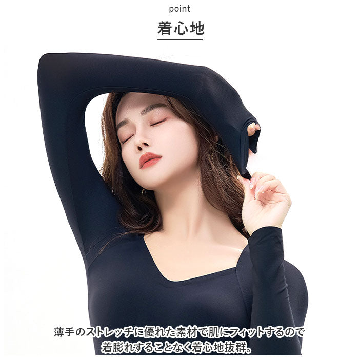 ・薄手のストレッチに優れた素材で肌にフィットするので着膨れすることなく着心地抜群。