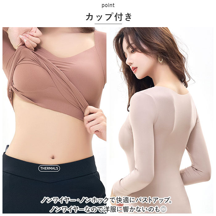 カップ付きインナー 暖かい 通販 下着 アンダーウェア アンダーウエア 胸パット付き 肌着 あったか ローネック 長そで 防寒 トップス パッド付 あたたか ブラトップ 長袖インナーTシャツ