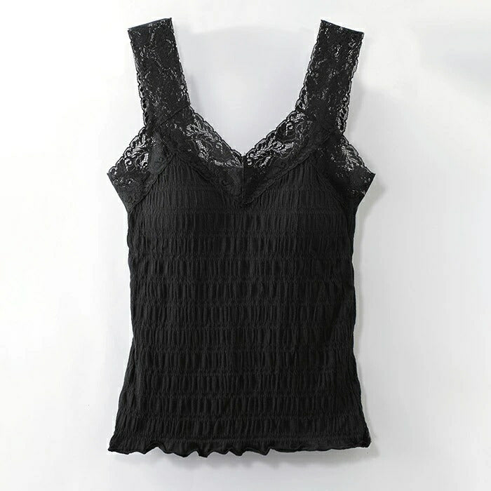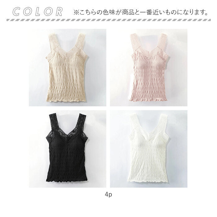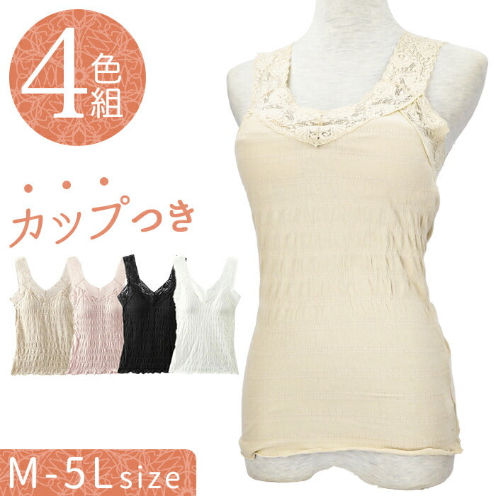 カップ付きキャミソール レース 4枚セット 通販 カップ付シャーリングキャミ2色組 キャミソール カップ付き レディース 幅広レース おしゃれ シンプル 無地 締め付けない 女性用 婦人