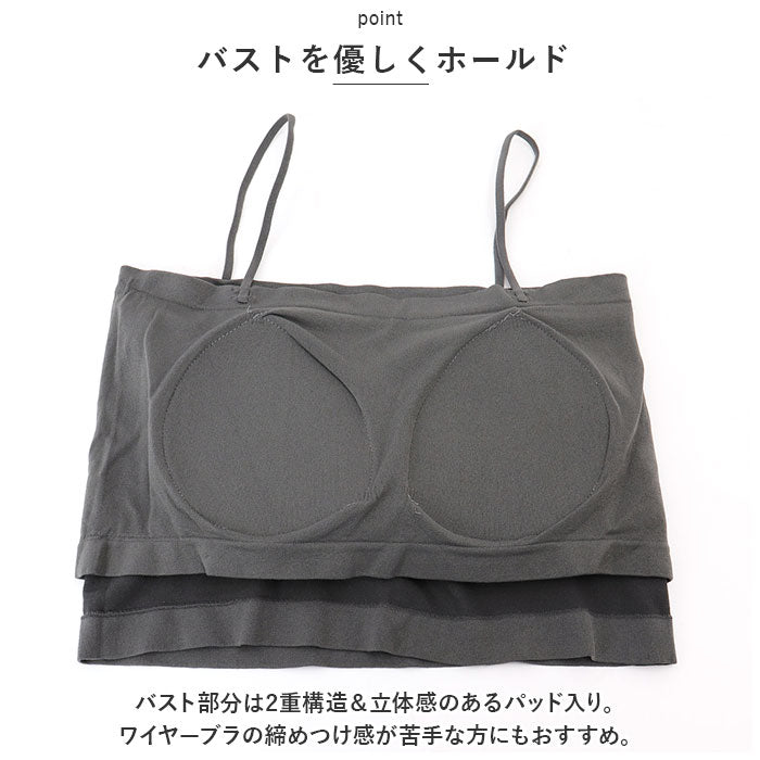 ・バスト部分は2重構造&立体感のあるパッド入り。ワイヤーブラの締めつけ感が苦手な方にもおすすめ。