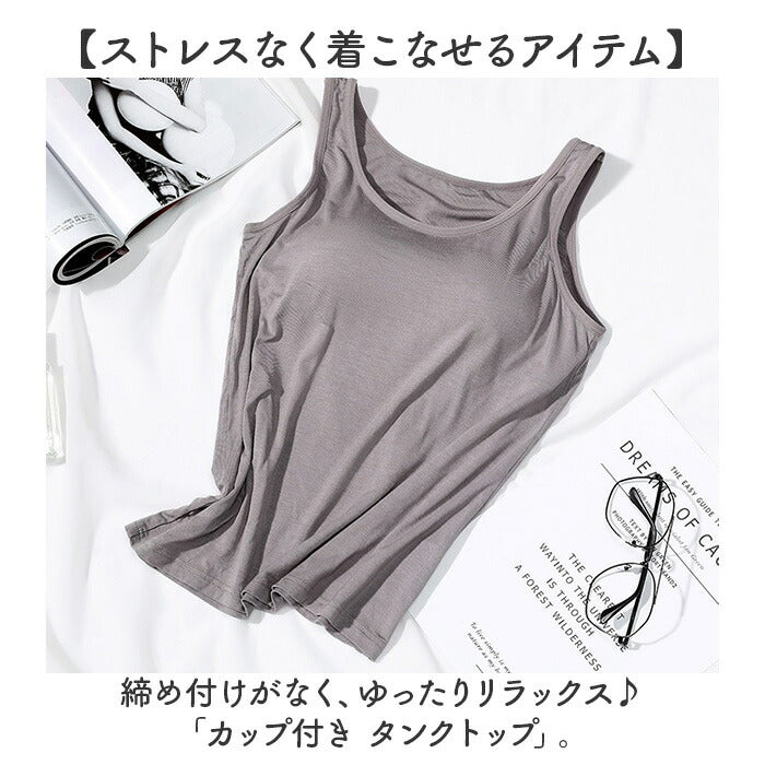 ・締め付けがなく、ゆったりリラックス♪「カップ付き タンクトップ」。