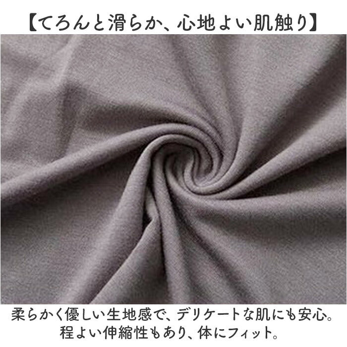 ・柔らかく優しい生地感で、デリケートな肌にも安心。程よい伸縮性もあり、体にフィット。