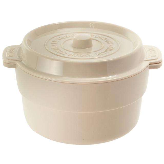 ホーローココット風デザインのかわいいランチボックスです。樹脂製なので、軽くて持ち運びしやすいです。