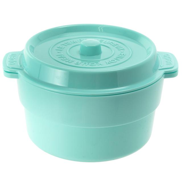 カフェスタイル ランチボックス ココット風 通販 弁当箱 2段 2段式 ボウル 鍋型 ブルー 青 グリーン 緑 ピンク ベージュ レンジ可 電子レンジOK インスタ映え ホーロー風デザイン 外容器630ml 内容器270ml おしゃれ かわいい ミニココット型 ラウンド 丸型 どんぶり